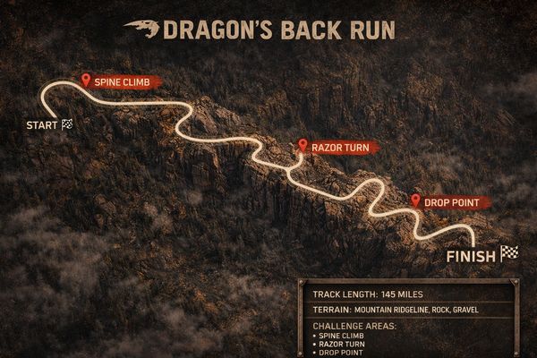 A mountain route with steep climbs, rocky descents, and narrow cliffside paths. One of the most dangerous tracks in Iron Miles—there’s no room for error and no easy way out.
